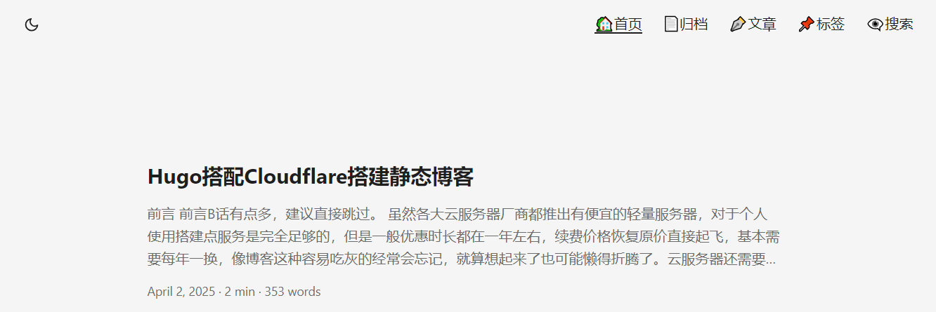 Hugo的很多配置都和主题深度绑定,本文的配置适合Paper-Mod,对于各种好看的主题反而不一定适用,换用其他主题请一定要查看主题Github的指引。