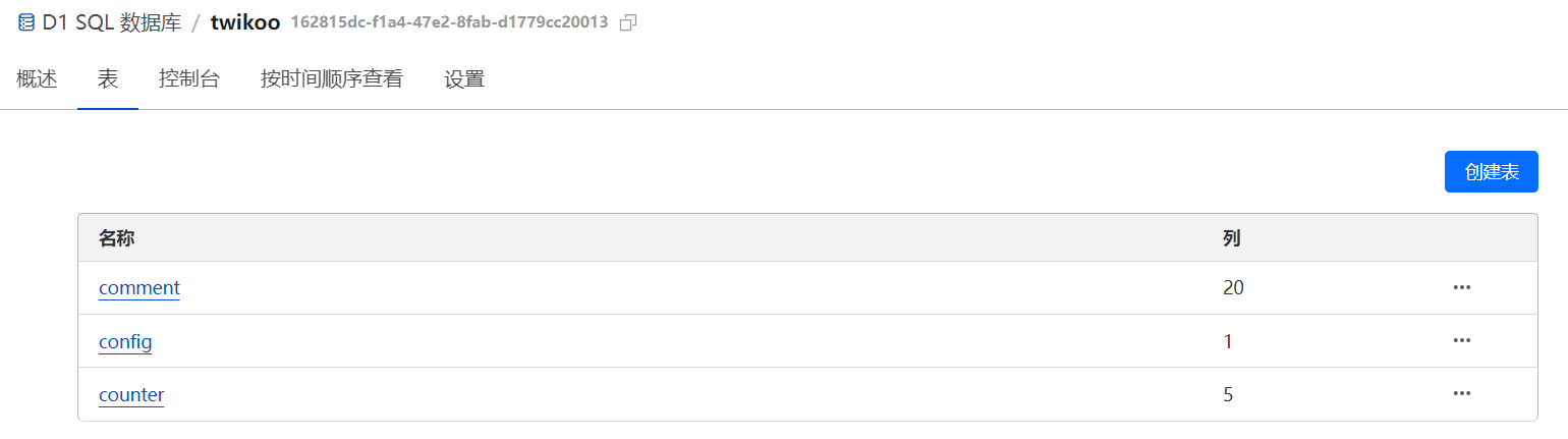 在Cloudflare左侧找到D1 SQL数据库,创建一个twikoo数据库,然后点进去,点击控制台,将twikoo-cloudflare仓库中的schema.sql复制下来,粘贴进控制台执行。然后应该能看见创建的表